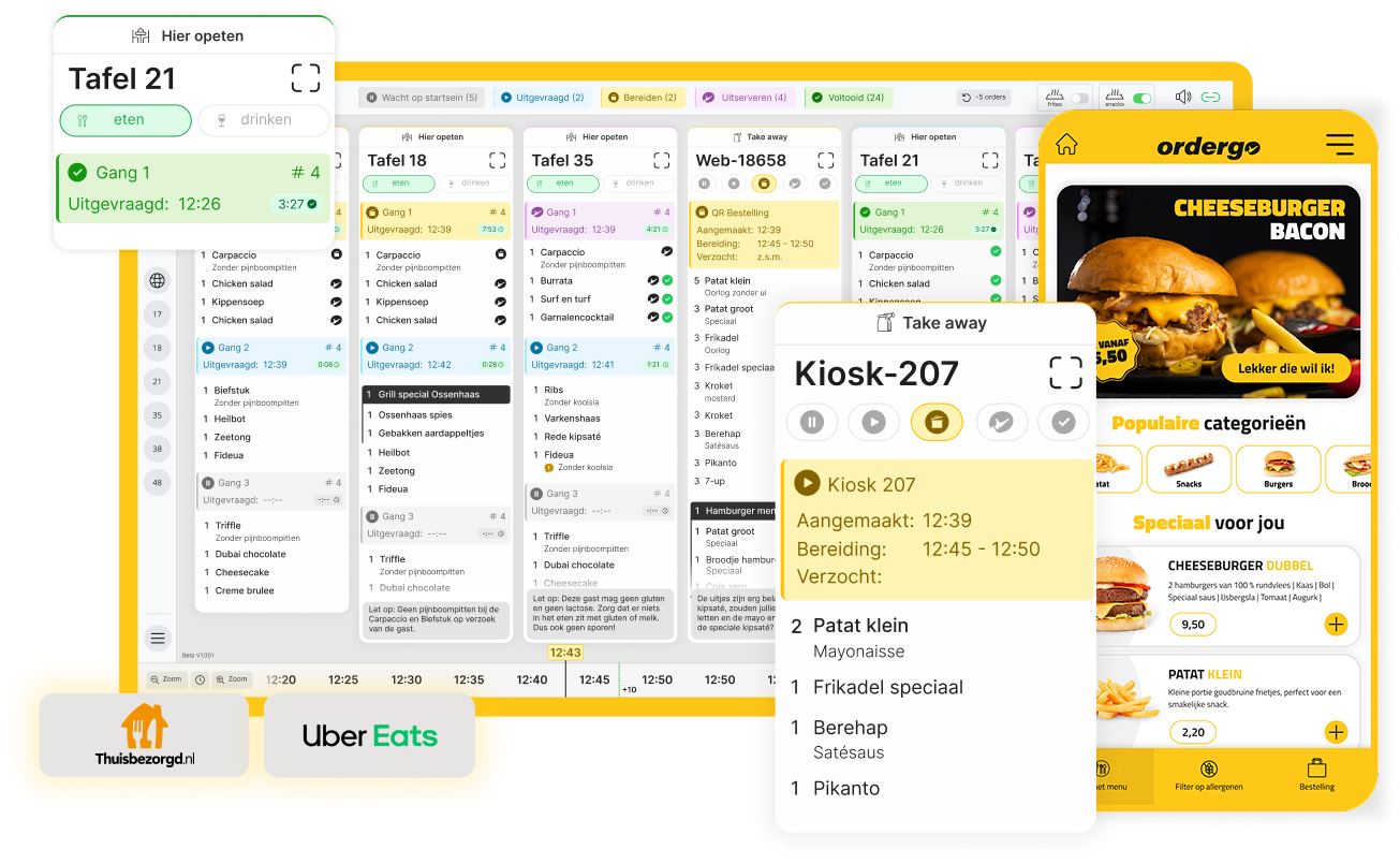 With our smart kitchen planning, staff can get straight to work with short instructions. The status per order is easy to follow, from in preparation to packed and ready. With every status change, the customer can automatically receive an e-mail. This keeps everyone well informed at all times. And that is very convenient.